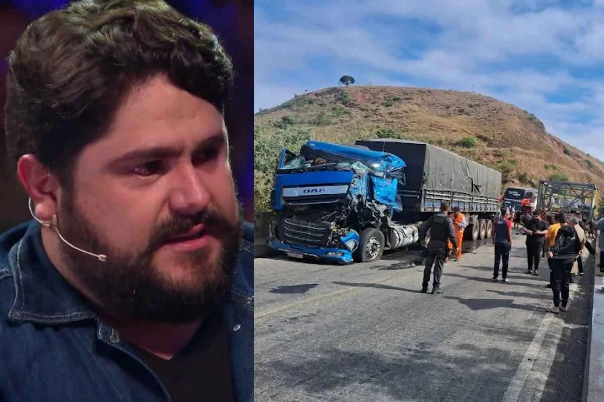 Foto mostra o cantor Cesar Menotti, dupla de Fabiano, após batida contra carreta; rodovia segue interditada